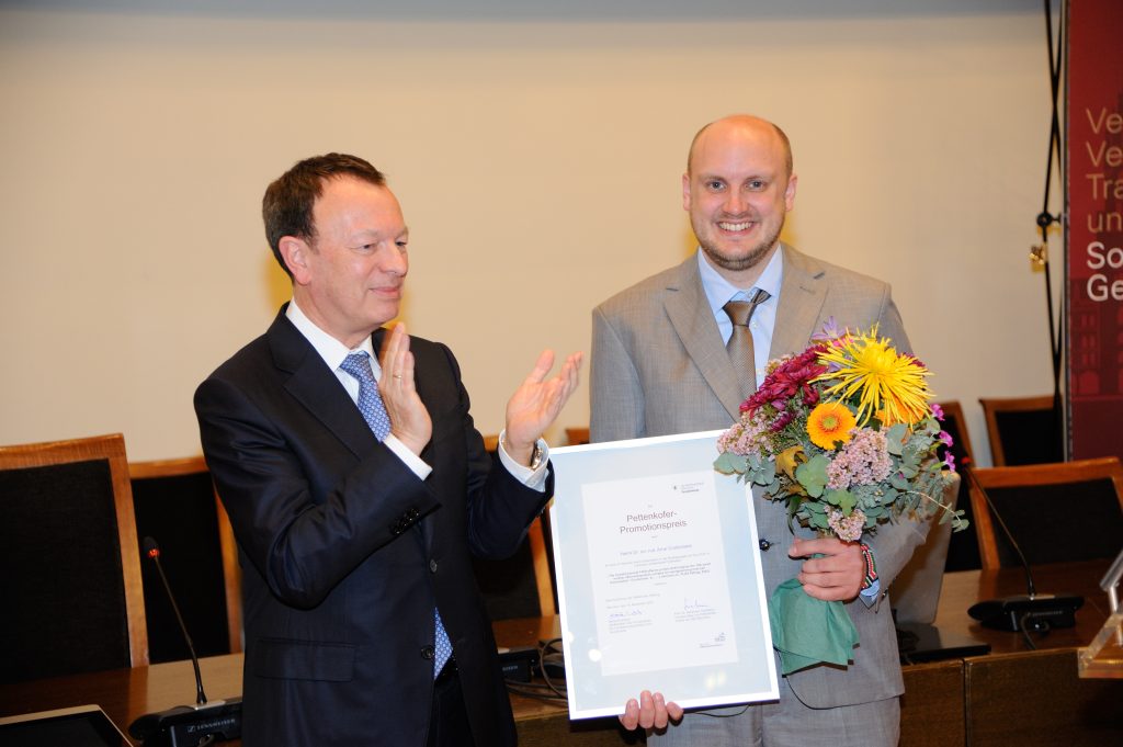 Doctoral prize winner Dr. Arne Cordsmeier with Prof. Suerbaum Photo: Heribert Mühldorfer